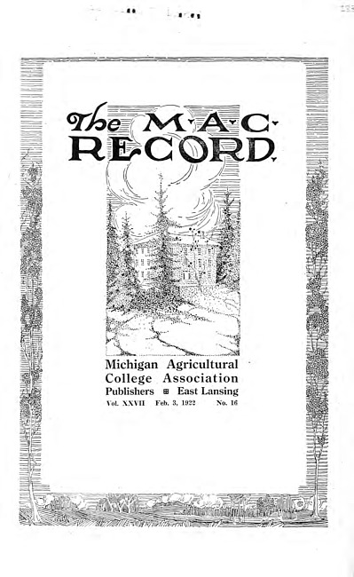 The M.A.C. record. Vol. 27 no. 16 (1922 February 3)