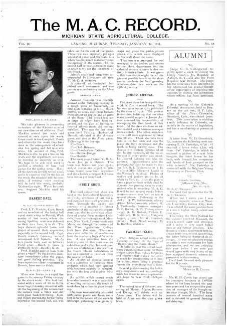 The M.A.C. record. Vol. 16 no. 18 (1911 January 24)