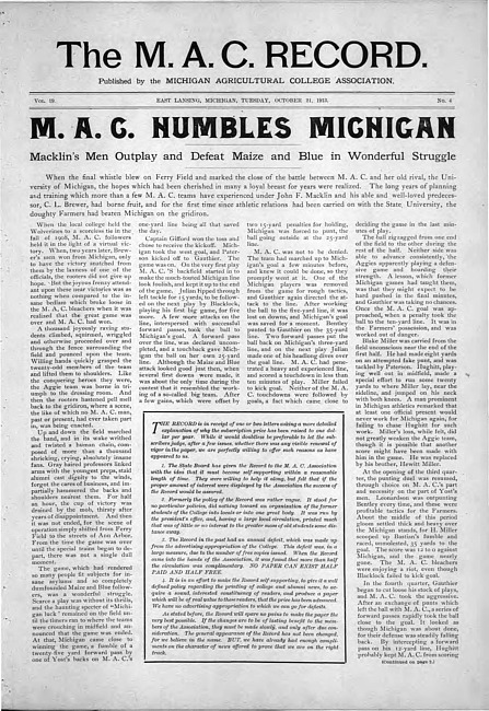 The M.A.C. record. Vol. 19 no. 4 (1913 October 21)