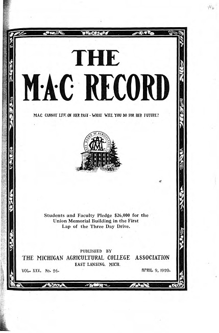 Michigan State College record. Vol. 36 no. 9 (1931 May)