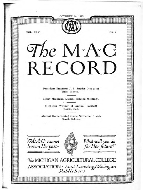 The M.A.C. record. Vol. 25 no. 5 (1919 October 24)