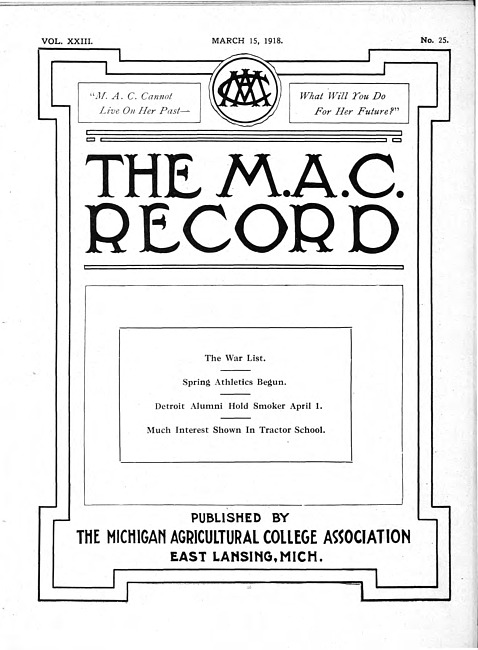 Text (1931)Part of M.A.C. Record (Serial 48)Michigan State College record. Vol. 36 no. 9 (1931 May)