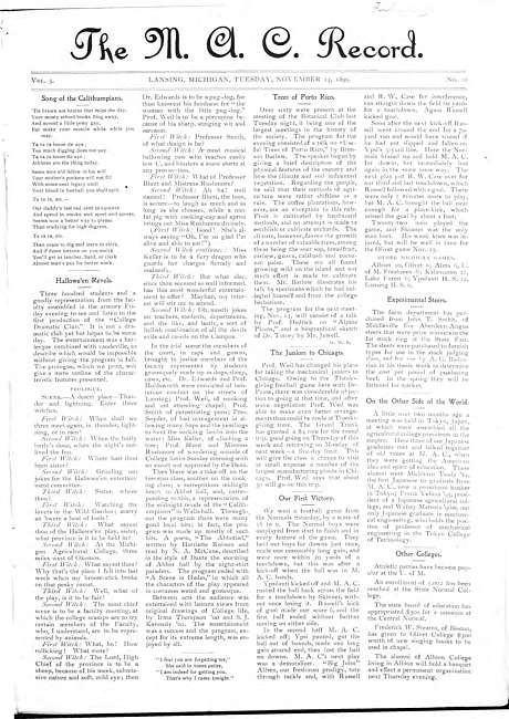 The M.A.C. record. Vol. 5 no. 10 (1899 November 14)