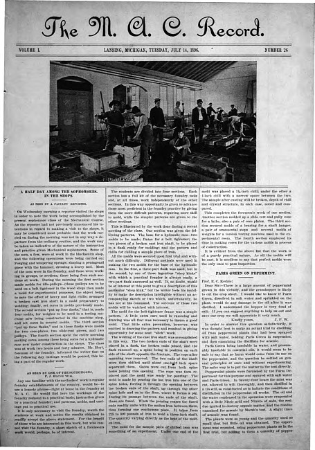 The M.A.C. record. Vol. 1 no. 26 (1896 July 14)