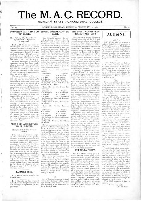 The M.A.C. record. Vol. 13 no. 20 (1908 February 11)