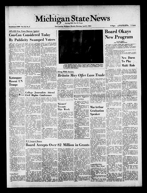 Michigan State news. (1961 April 3)
