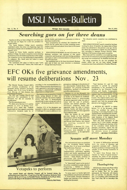 Text (1972)Part of MSU News Bulletin (Serial 45)MSU news-bulletin. Vol. 4 no. 09 (1972 November 16)