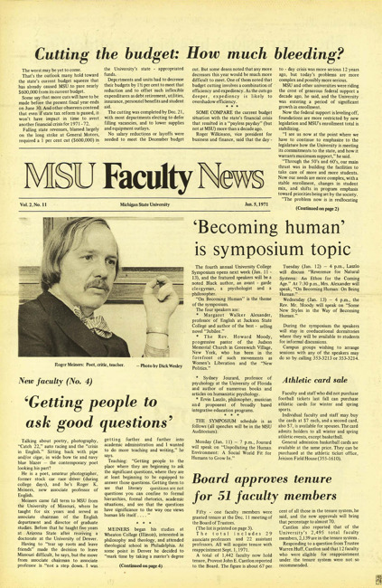 MSU faculty news. Vol. 2 no. 1 (1970 September 29)