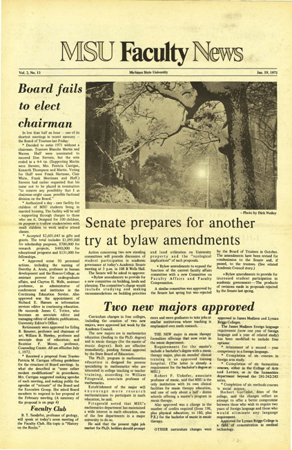 Text (1970)Part of MSU News Bulletin (Serial 45)MSU news-bulletin. Vol. 3 no. 13 (1972 January 13)