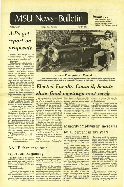 Text (1973)Part of MSU News Bulletin (Serial 45)MSU faculty news. Vol. 1 no. 18 (1970 February 24)