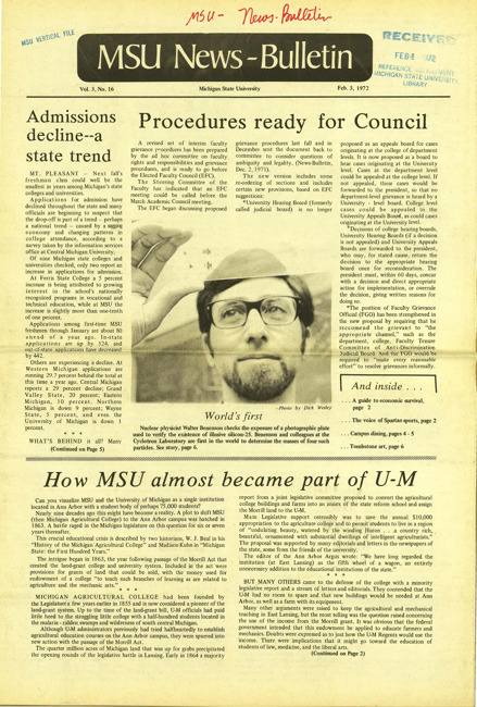 MSU news-bulletin. Vol. 3 no. 16 (1972 February 3)