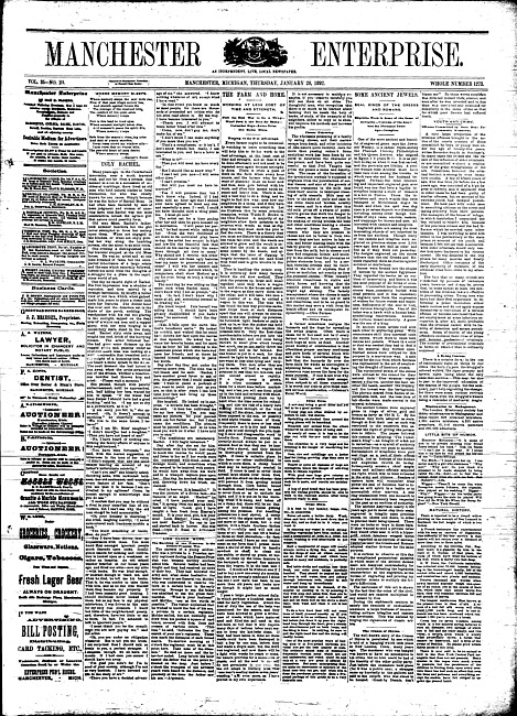 Text (1894)Part of Making of Modern MichiganManchester enterprise. Vol. 25 no. 20 (1892 January 28)