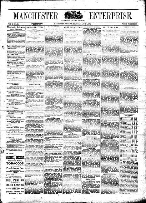 Text (1877)Part of Making of Modern MichiganManchester enterprise. Vol. 23 no. 15 (1889 December 19)