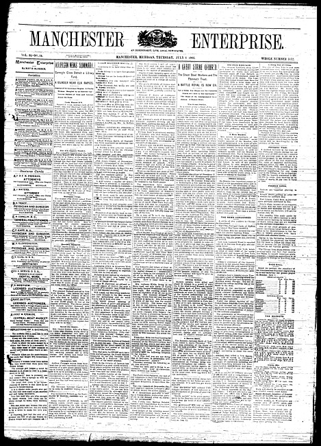 Text (1901)Part of Making of Modern MichiganManchester enterprise. Vol. 11 no. 9 (1877 November 22)