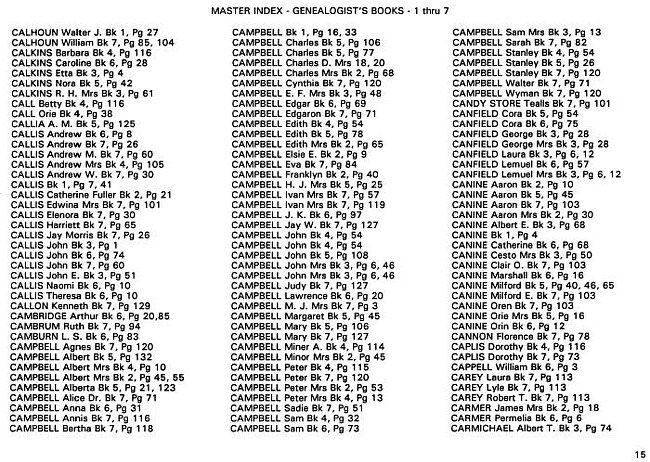 Surname index to newspaper clippings regarding the Milan Michigan area. Approx. dates 1885/1991, Page 015