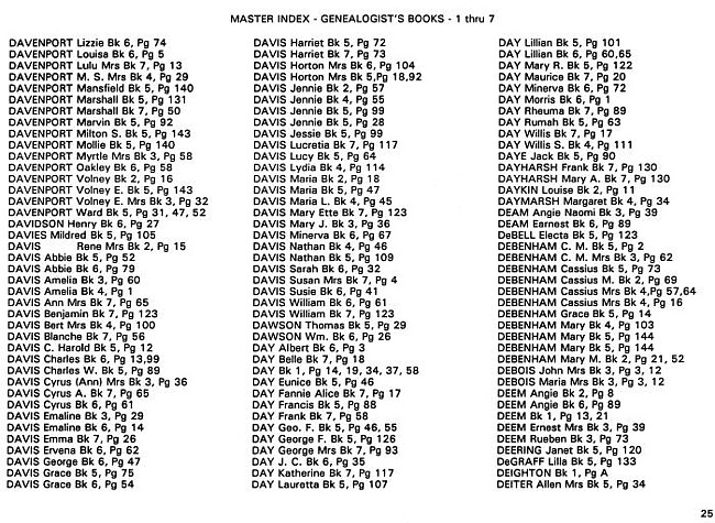 Surname index to newspaper clippings regarding the Milan Michigan area. Approx. dates 1885/1991, Page 025