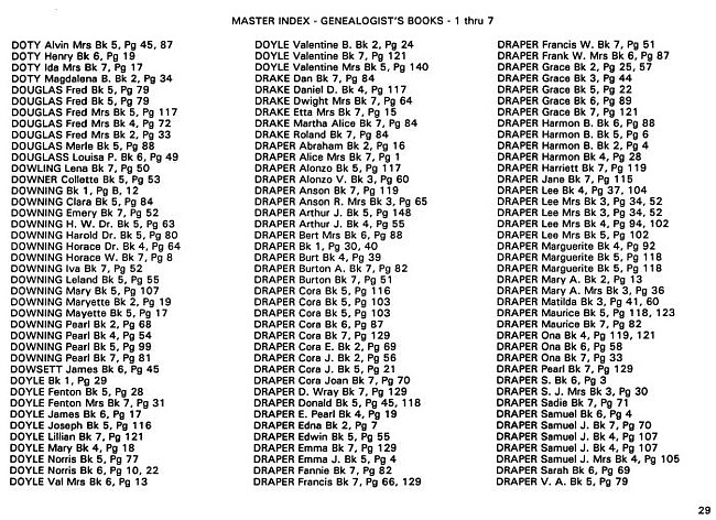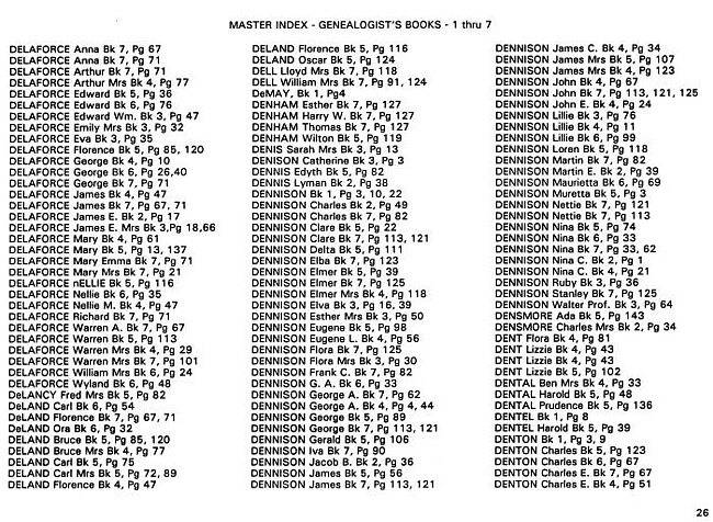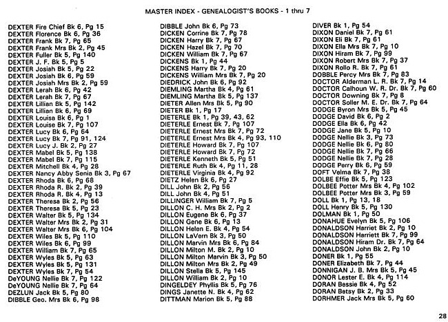 Surname index to newspaper clippings regarding the Milan Michigan area. Approx. dates 1885/1991, Page 026