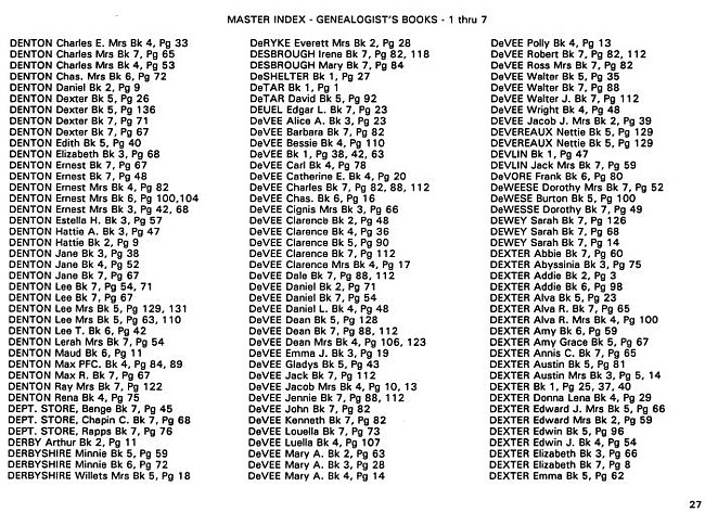 Surname index to newspaper clippings regarding the Milan Michigan area. Approx. dates 1885/1991, Page 027