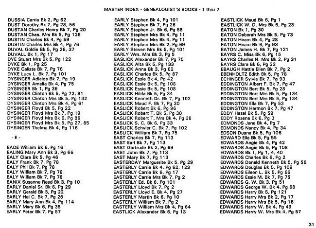 Surname index to newspaper clippings regarding the Milan Michigan area. Approx. dates 1885/1991, Page 031