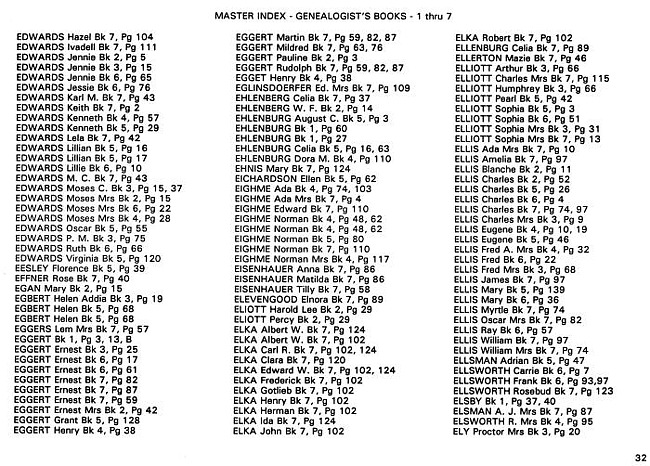 Surname index to newspaper clippings regarding the Milan Michigan area. Approx. dates 1885/1991, Page 032