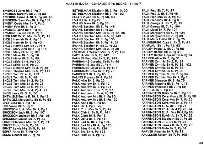 Surname index to newspaper clippings regarding the Milan Michigan area. Approx. dates 1885/1991, Page 033