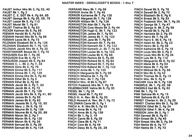 Surname index to newspaper clippings regarding the Milan Michigan area. Approx. dates 1885/1991, Page 034