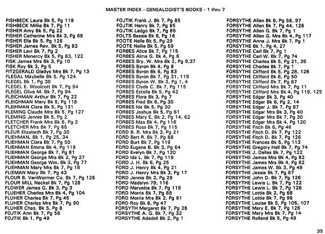 Surname index to newspaper clippings regarding the Milan Michigan area. Approx. dates 1885/1991, Page 035