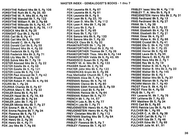 Surname index to newspaper clippings regarding the Milan MI area. Approx. dates 1885-1991, Page 036