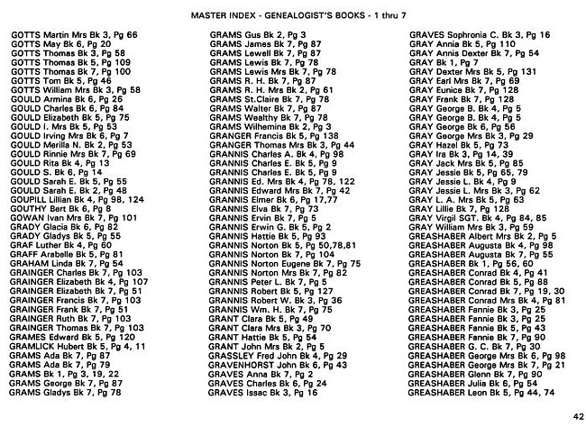Surname index to newspaper clippings regarding the Milan MI area. Approx. dates 1885-1991, Page 042