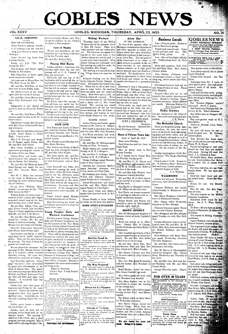 Gobles news. Vol. 35 no. 31 (1925 April 23)