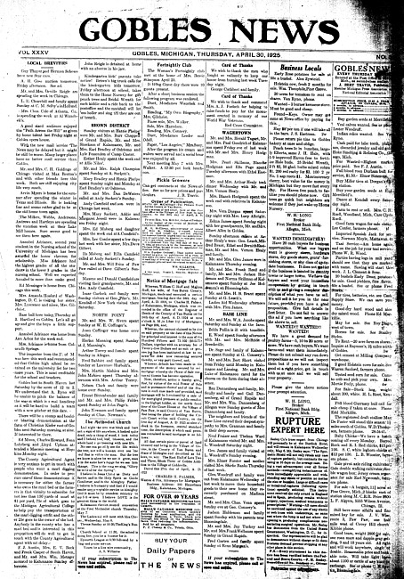 Gobles news. Vol. 35 no. 32 (1925 April 30)
