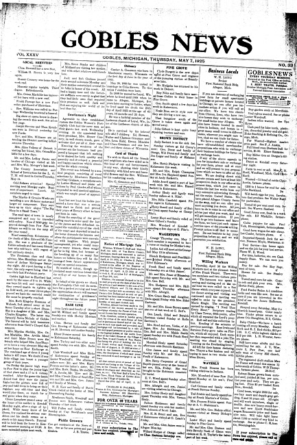 Gobles news. Vol. 35 no. 33 (1925 May 7)