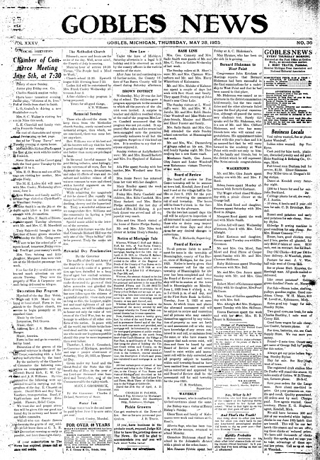 Gobles news. Vol. 35 no. 36 (1925 May 28)