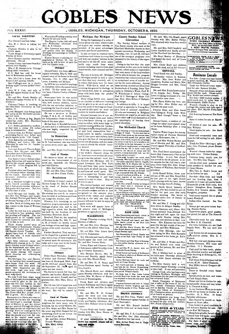 Gobles news. Vol. 36 no. 3 (1925 October 8)