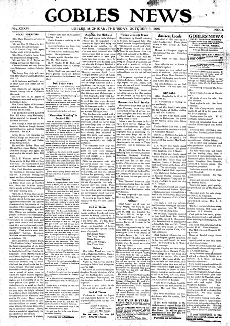 Gobles news. Vol. 36 no. 4 (1925 October 15)
