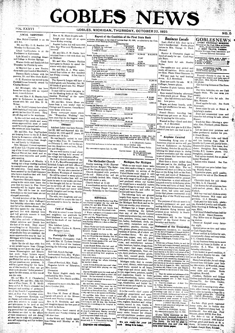 Gobles news. Vol. 36 no. 5 (1925 October 22)