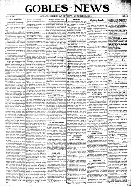 Gobles news. Vol. 36 no. 6 (1925 October 29)