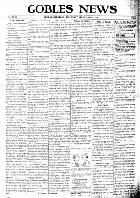 Gobles news. Vol. 36 no. 7 (1925 November 5)