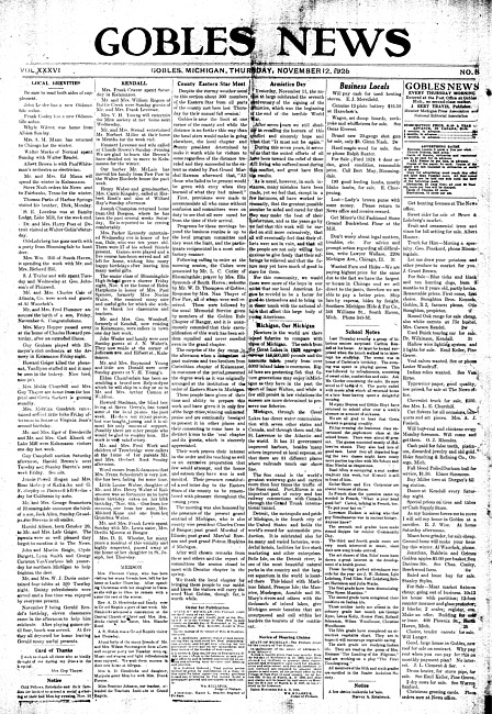 Gobles news. Vol. 36 no. 8 (1925 November 12)
