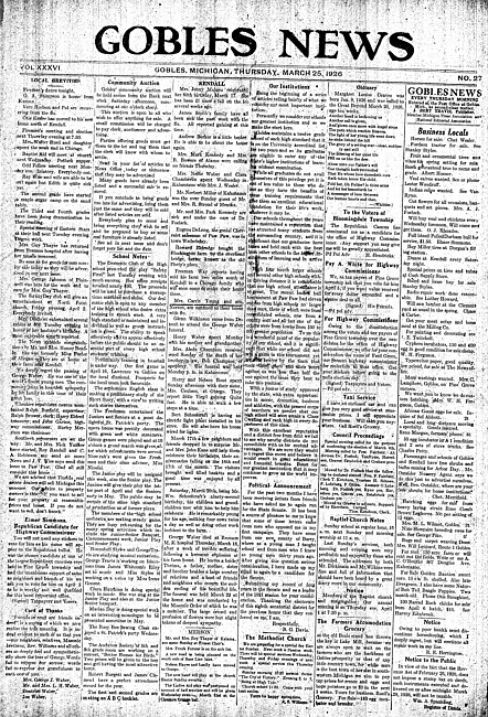 Gobles news. Vol. 36 no. 27 (1926 March 25)