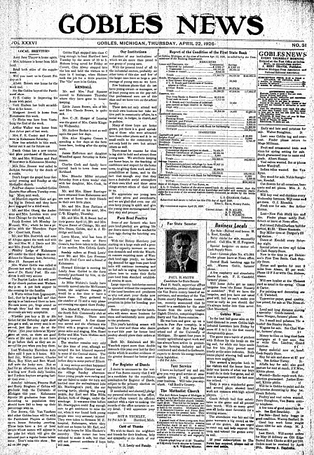 Gobles news. Vol. 36 no. 31 (1926 April 22)