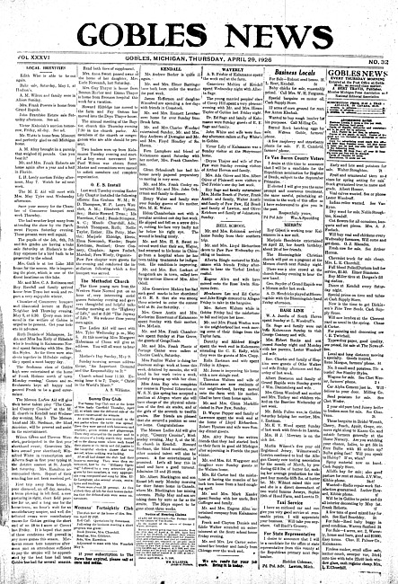 Gobles news. Vol. 36 no. 33 (1926 April 29)