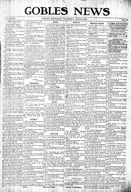 Gobles news. Vol. 36 no. 33 (1926 May 6)