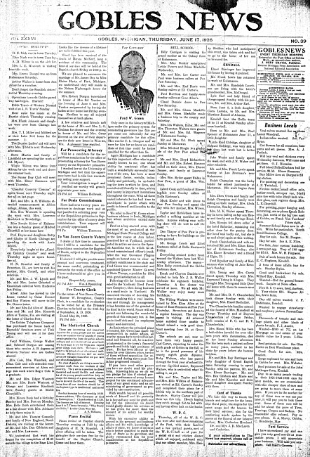 Gobles news. Vol. 36 no. 39 (1926 June 17)