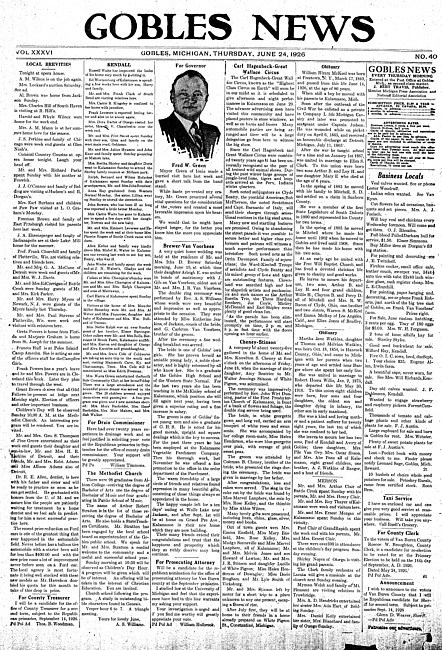 Gobles news. Vol. 36 no. 40 (1926 June 24)
