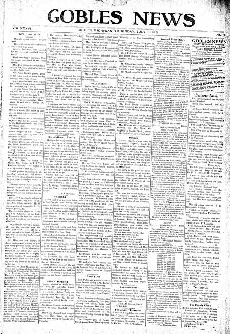 Gobles news. Vol. 36 no. 41 (1926 July 1)