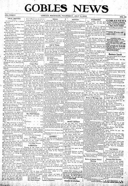 Gobles news. Vol. 36 no. 42 (1926 July 8)