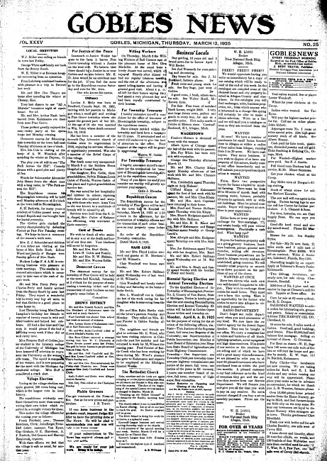 Gobles news. Vol. 35 no. 25 (1925 March 12)