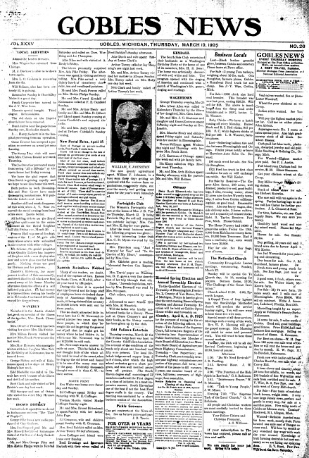 Gobles news. Vol. 35 no. 26 (1925 March 19)