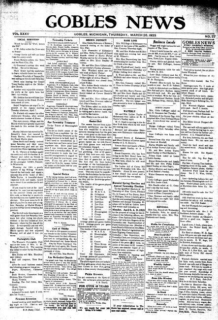 Gobles news. Vol. 35 no. 27 (1925 March 26)